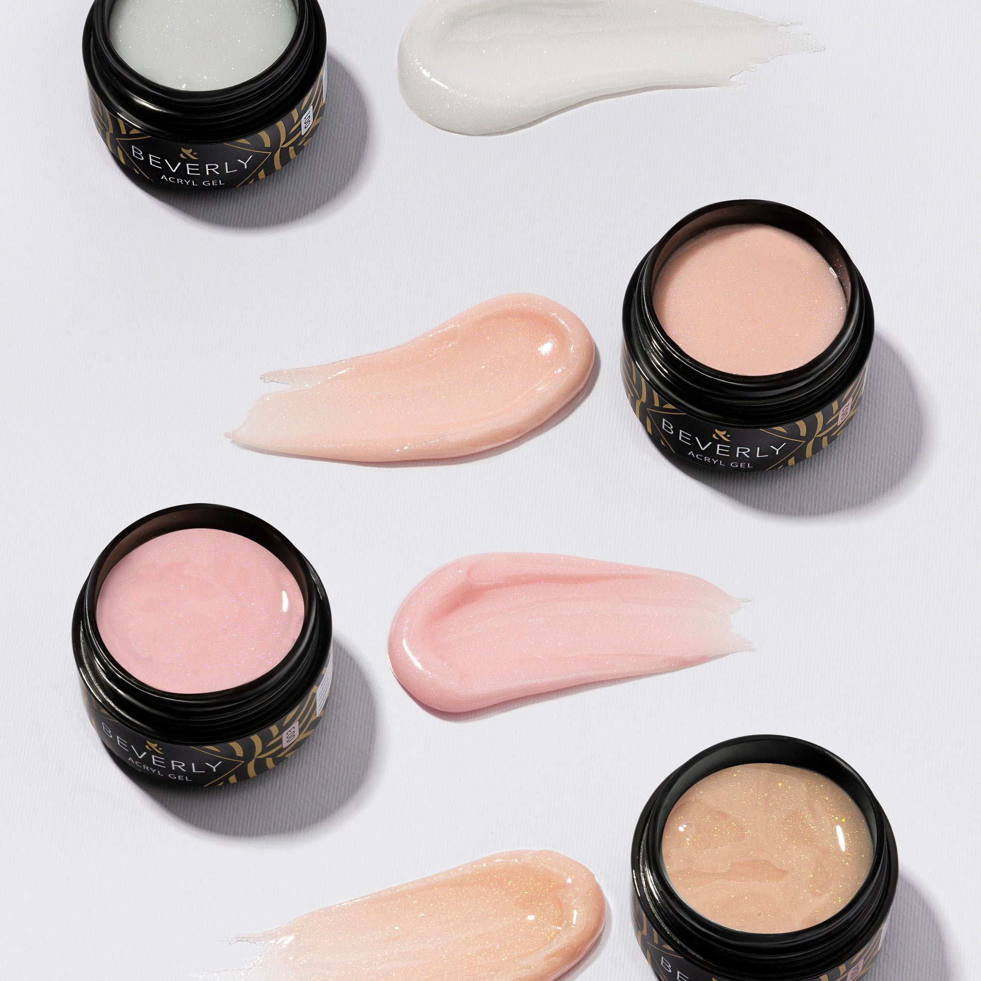 F.O.X Acryl Gel Beverly - un matériau de revêtement polyvalent avec des particules brillantes, conçu pour modeler, corriger et renforcer la plaque de l'ongle.