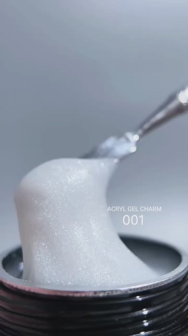 Acryl gel Charm - une nouvelle collection de gels acryliques épais avec des paillettes. Le matériau permet d'effectuer un modelage sur des gabarits ou des formes supérieures. Convient pour obtenir l'effet le plus naturel et pour corriger une structure d'ongles naturels. Il peut être utilisé comme un design prêt à l'emploi et renforcer ou réparer facilement l'ongle ou restaurer un fragment du bord libre.