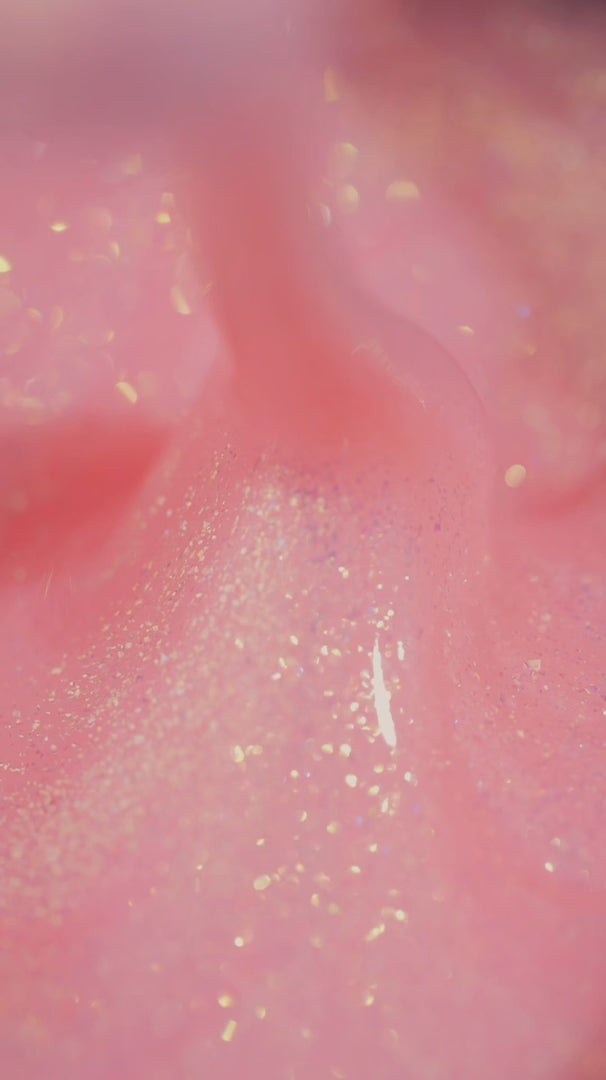 FOX Shine GeI Pink est un gel liquide de viscosité moyenne pour renforcer les ongles, avec une teinte camouflage rose vif et des reflets subtils.