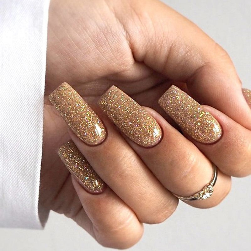 Une teinte chaude et dorée avec des paillettes intensément scintillantes.