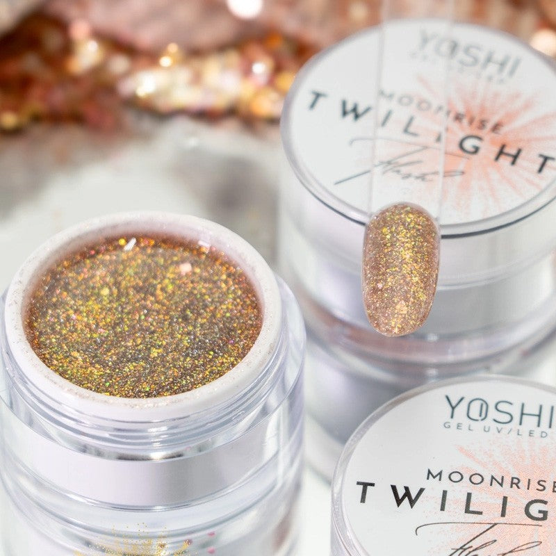 Une pose parfaite allie durabilité, facilité d'application et fini éclatant. C'est pourquoi, chez Yoshi, nous avons créé Twilight Flash , des gels semi-transparents uniques aux mille et une paillettes brillantes. Chaque pose réalisée avec ces gels allie durabilité, facilité d'application et brillance spectaculaire… comme toujours chez Yoshi.